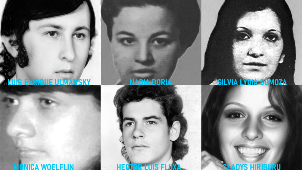 Sus nombres eran Héctor Luis Fluxá, Silvia Lidia Somoza, Mónica Cristina Woelflin, Nadia Doria, Gladys Beatriz Hiriburu y Luis Enrique Ulmansky. Tenían proyectos, vínculos, deseos y una fuerte convicción política. La selección de las víctimas no fue azarosa: todos y todas formaban parte de una generación politizada, atravesada por la experiencia universitaria, el debate ideológico y el compromiso con las luchas sociales de la época.