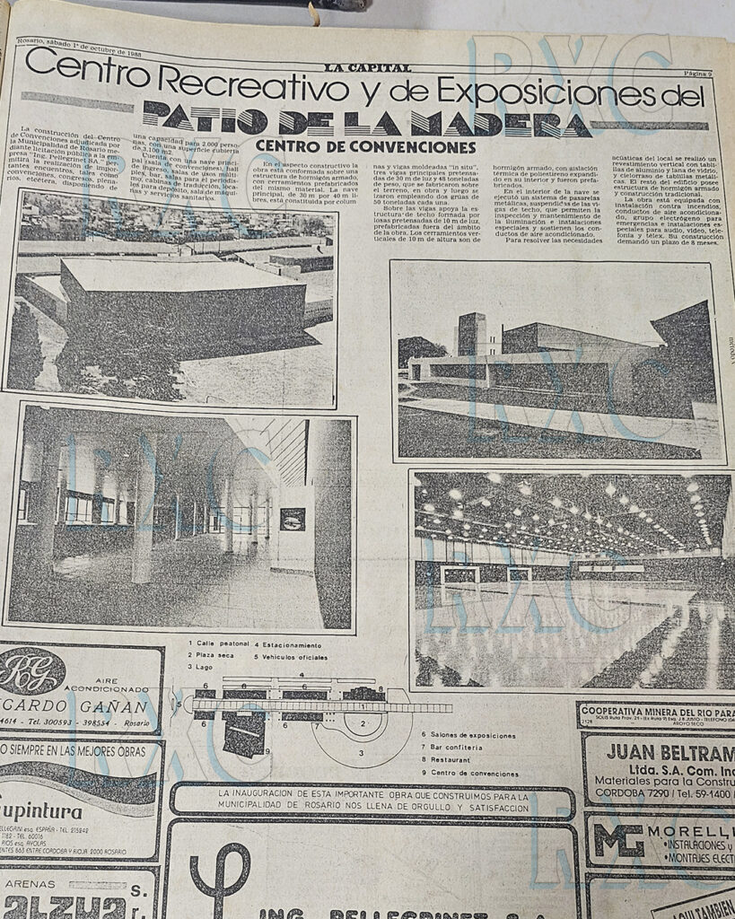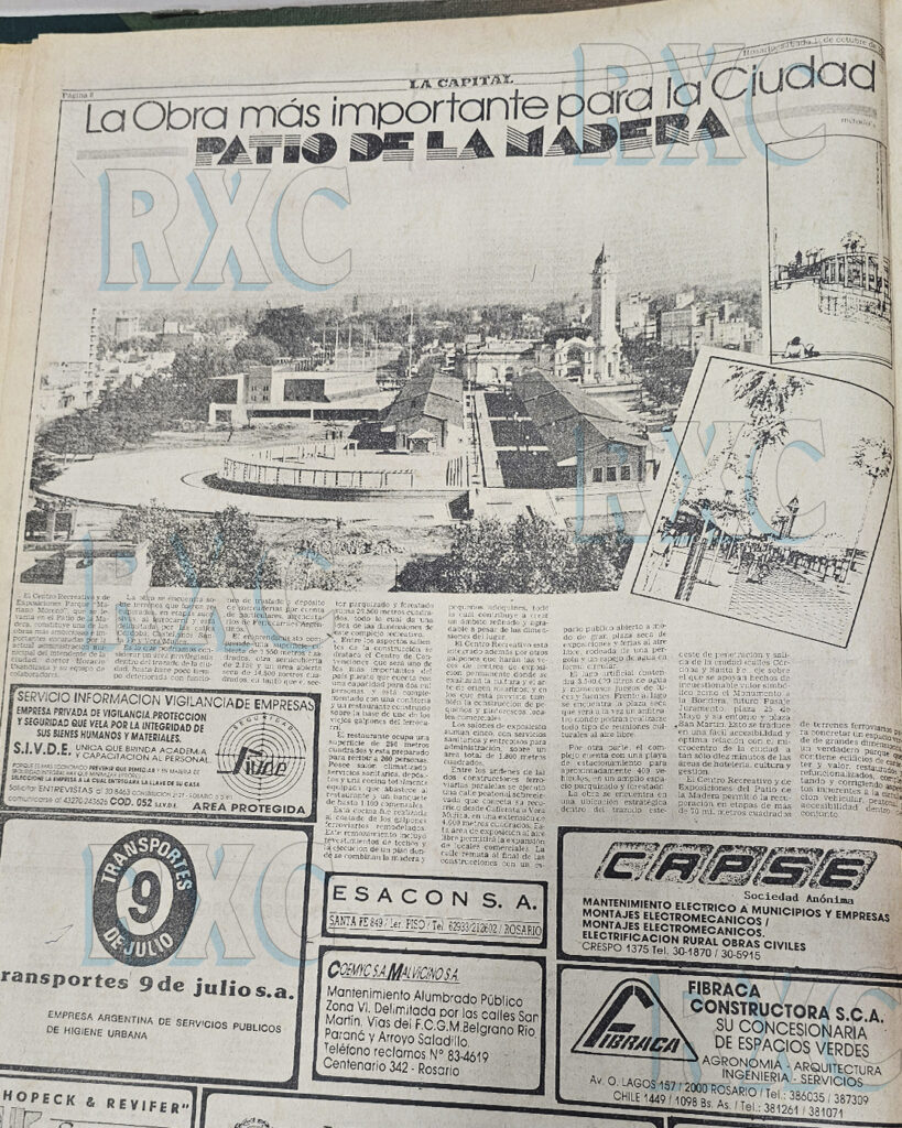 A fines de los años 80, Rosario atravesaba un proceso de profunda metamorfosis. Bajo el mandato del intendente Horacio Usandizaga, la ciudad comenzó a proyectarse como un polo turístico y de eventos a nivel nacional. En diciembre de 1987, lo que hoy conocemos como el Mercado del Patio, predio entre las calles Santa Fe, Cafferata, Córdoba y Vera Mujica, empezaba a tomar forma bajo un proyecto ambicioso y, en su momento, polémico: el “Complejo Ferial de Convenciones, Exposiciones y Congresos”.