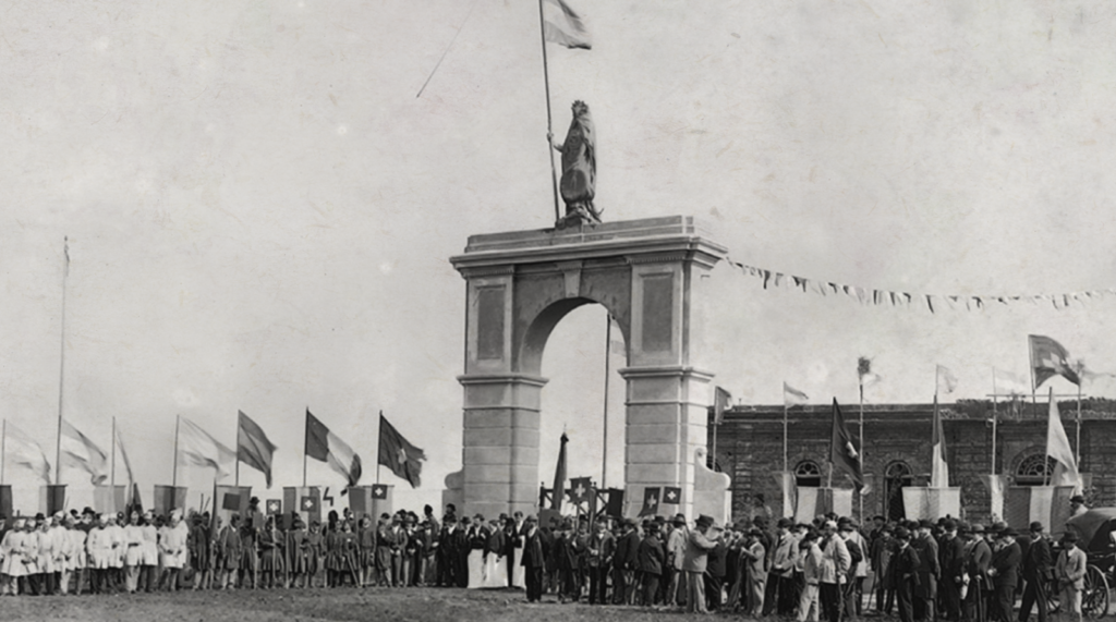 Los orígenes del barrio Tiro Suizo se remontan a septiembre de 1889, cuando un grupo de argentinos y suizos residentes en Rosario fundó una sociedad de tiro en la zona sur de la ciudad. De esa experiencia surgiría no solo el nombre del barrio, sino también una identidad marcada por la sociabilidad, la organización comunitaria y una fuerte impronta simbólica, todavía visible en la imponente arquitectura del antiguo Tiro Federal, ubicado en Lamadrid y cortada Raffo, con su arco monumental y la estatua de la Libertad coronando el edificio. Con el paso de las décadas y la consolidación de un barrio mayoritariamente obrero, esos espacios de encuentro se ampliaron: hacia los años treinta, los cines barriales comenzaron a ocupar un lugar central en la vida cotidiana. En ese entramado urbano y social, el cine Tiro Suizo se convirtió en un punto de referencia para generaciones de vecinos, acompañando la historia del barrio tanto como sus instituciones, escuelas y la vecinal que, desde mediados del siglo XX, articuló buena parte de la vida comunitaria de la zona.